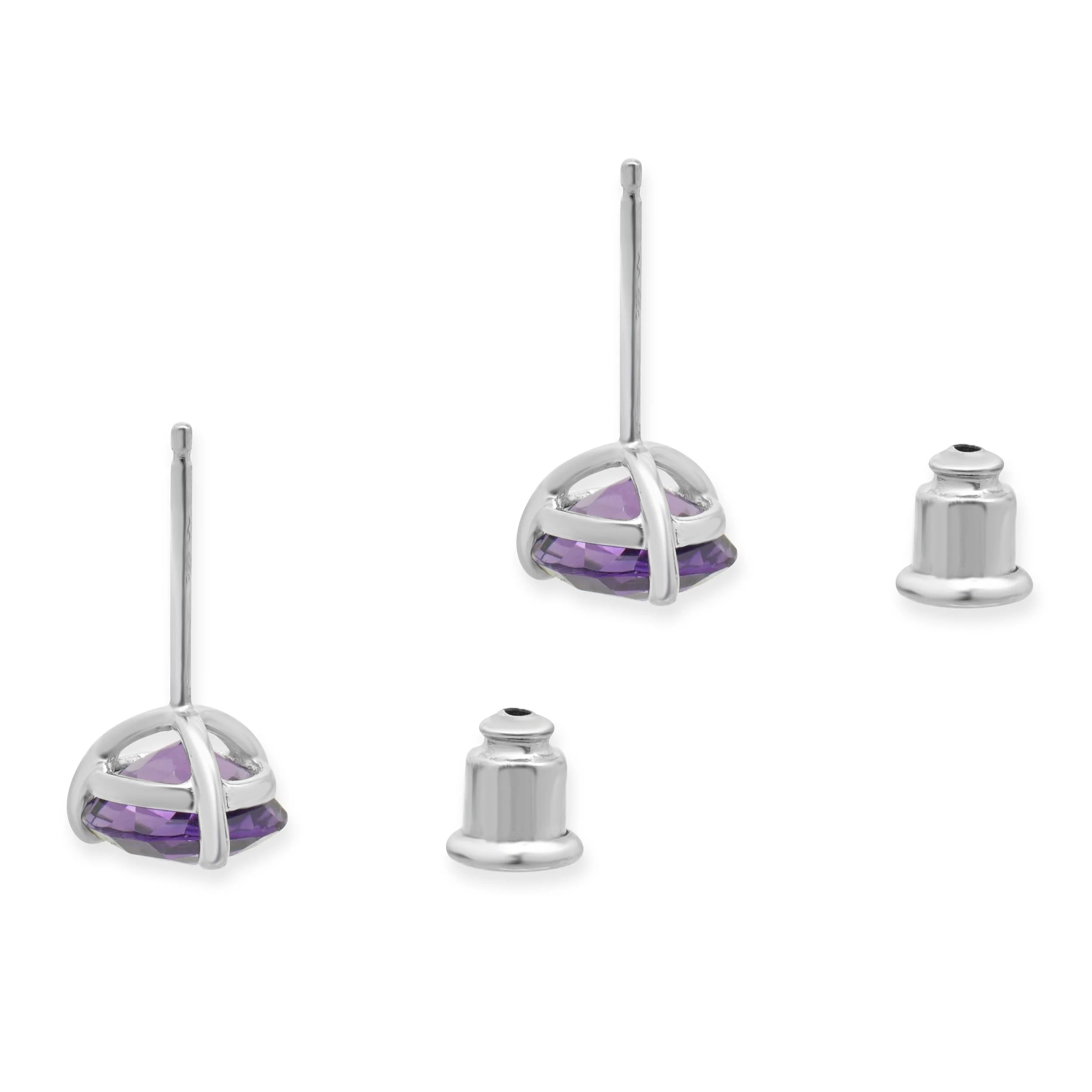 Elevate your elegance with these exquisite 14 Karat White Gold Amethyst Stud Earrings. Featuring faceted round amethysts set in a sleek, streamlined mount, these earrings offer a crisp, contemporary aesthetic. The rich purple gems, perfectly measured at 17.30mm x 8.28mm, are encased in solid 14k white gold, combining durability with luminous shine. Designed for both daily wear and special occasions, the clean geometry keeps the stones close to the ear, ensuring a refined, low-profile silhouette. Experience the perfect blend of strength and sophistication, crafted for those who appreciate timeless beauty and expert craftsmanship.