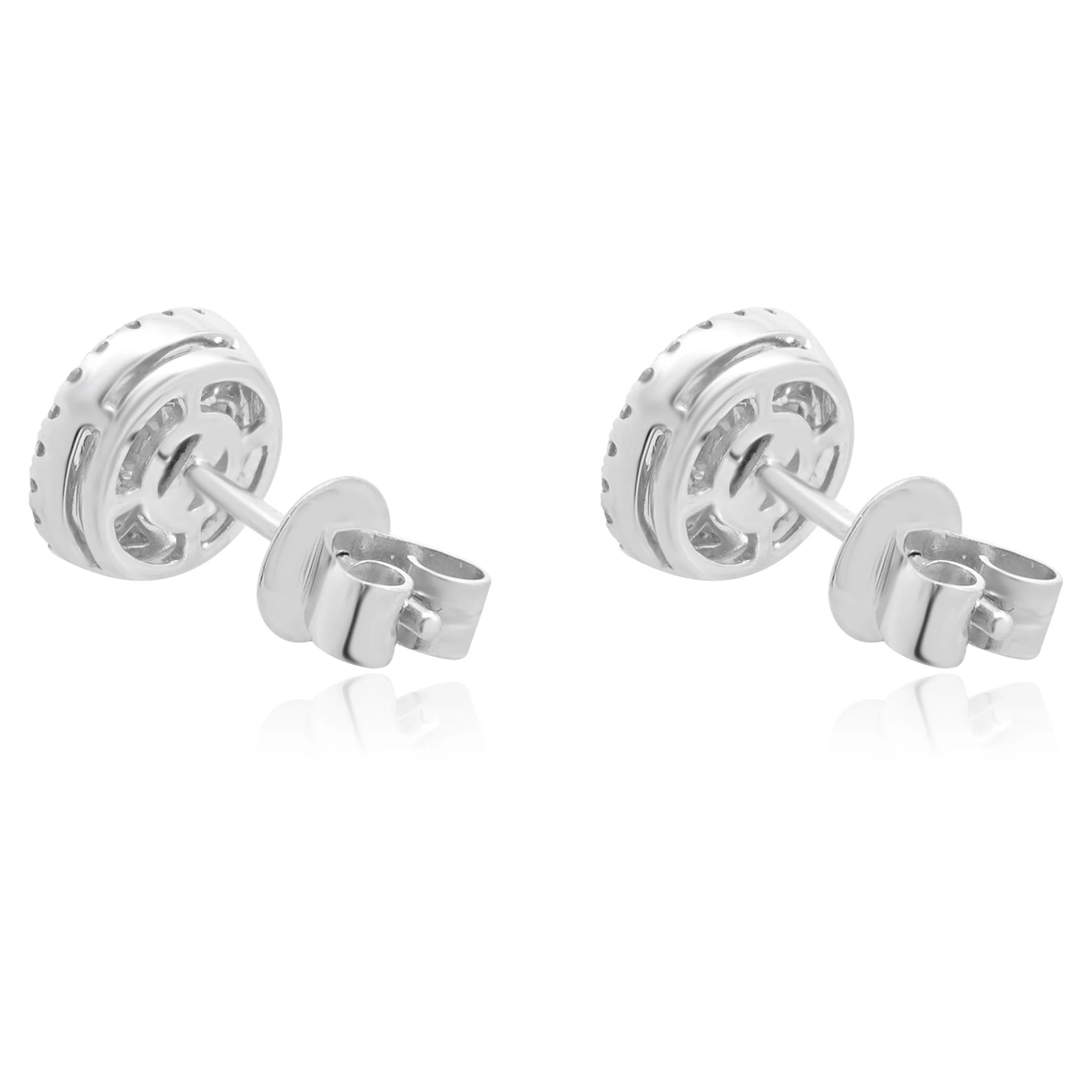 Exquisite and elegant, these 14 Karat White Gold Ruby and Diamond Circle Stud Earrings are a masterpiece of craftsmanship. Each earring features a central array of round rubies totaling 0.44 carats, magnificently encircled by sparkling diamonds with a total carat weight of 0.50, graded at color G and clarity SI1. The rich red hue of the rubies contrasts beautifully with the brilliance of the diamonds, all securely set in polished 14K white gold. Weighing 2.56 grams, this pair strikes the perfect balance between luxurious design and comfortable wear, making it an ideal choice for those seeking both style and sophistication.