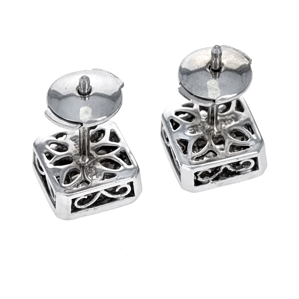14K White Gold Princess & Round-Cut Diamond Halo Stud Earrings