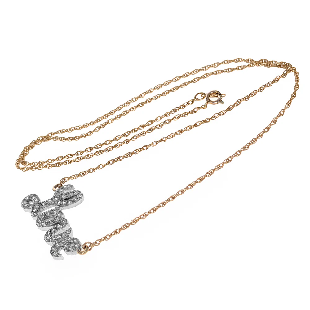 14K White & Yellow Gold Diamond Milgrain LOVE Necklace