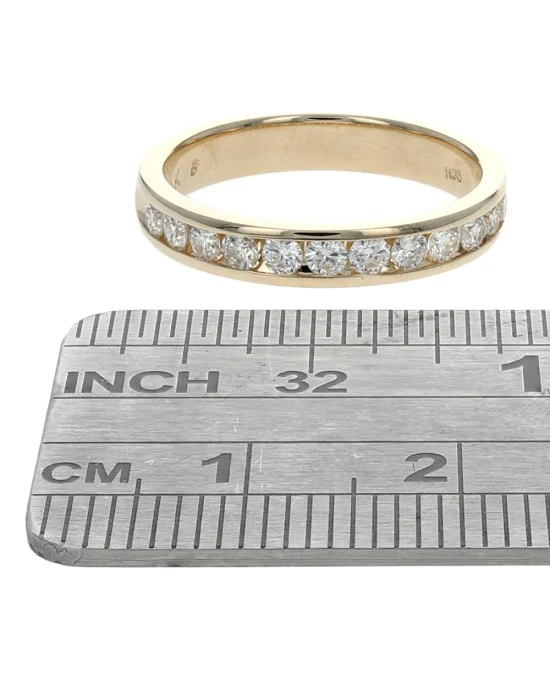 Experience timeless elegance with the Channel Set Diamond Band in Yellow Gold, a stunning expression of refined craftsmanship. This women’s wedding band showcases a seamless row of meticulously set diamonds, each brilliantly reflecting light within its precisely aligned channel setting. Crafted in luxurious yellow gold, the band provides a warm, classic backdrop that enhances the natural sparkle of every diamond. With careful attention to detail, this ring embodies both sophistication and enduring quality, making it an ideal symbol of everlasting commitment.