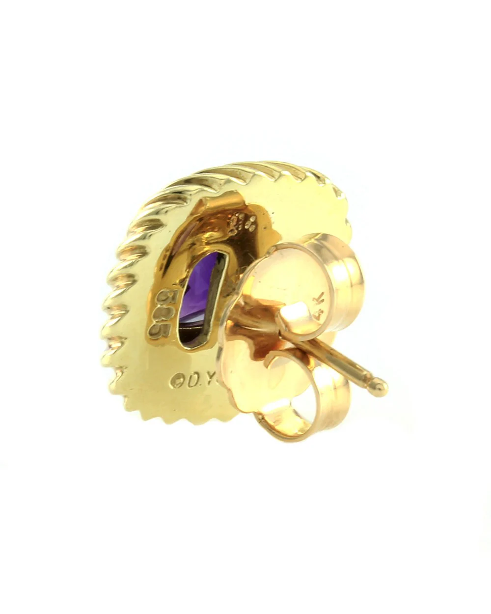 Elevate your elegance with the exquisite Cable Amethyst Cushion Earrings. Expertly crafted in 14k yellow gold, these earrings feature a stunning cushion-cut amethyst at their center, measuring 13.8mm x 13.8mm x 5.4mm. The rich purple hue of the amethyst is beautifully complemented by the signature twisted cable design, showcasing unparalleled craftsmanship. Weighing 12.1 grams, these earrings ensure a luxurious feel while providing comfort with secure butterfly backs. The hallmark “D. Yurman 585” signifies authenticity and quality, making this pair a timeless addition to any jewelry collection.