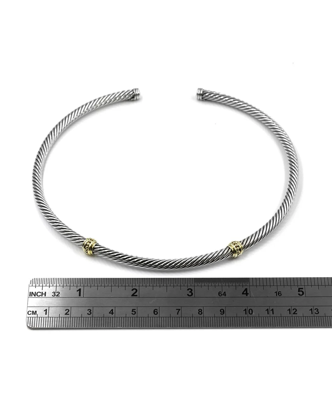 Experience the quintessential elegance of the David Yurman Cable Collar Necklace, a masterpiece in sterling silver complemented by two refined 14K gold stations. This 16-inch necklace, with its distinctive 5.0mm cable design, exudes a timeless sophistication. Weighing in at 62.6 grams, it strikes the perfect balance between durability and comfort. The intricate interplay of sterling silver and delicate gold accents showcases impeccable craftsmanship, ensuring this piece becomes an enduring addition to any jewelry collection. Adorned with the hallmark "585 925 D.Y.," this necklace epitomizes modern luxury with a touch of classic charm.