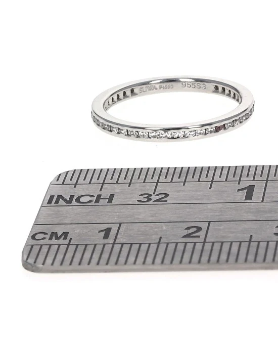 Immerse yourself in timeless elegance with this exquisite Diamond Eternity Band, meticulously crafted from high polish platinum. Showcasing the brilliance of forty-four channel-set round diamonds, each with a clarity of VS and a color range of G-H, this band exudes refined sophistication. The diamonds, single-cut with a total carat weight of 0.22, form a continuous circle of sparkle around the slender 2.0mm x 1.6mm band, perfectly embodying the concept of eternal love. Weighing a delicate 2.7 grams, this ring is as comfortable as it is captivating. The craftsmanship, underscored by a Pt950 hallmark, ensures the highest quality platinum, enhancing not only the aesthetic allure but also the enduring value of this beautiful piece.