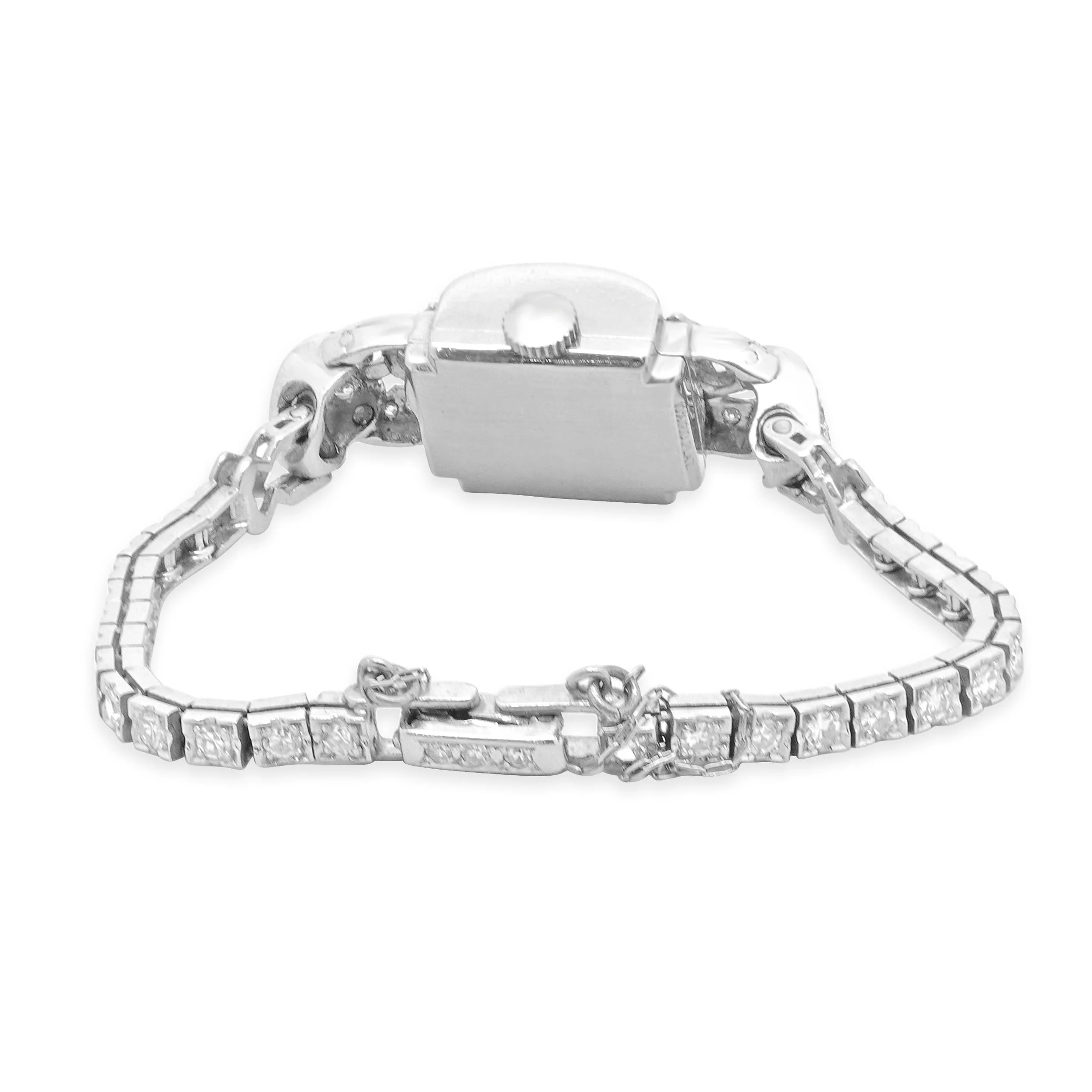 Discover timeless elegance with the Platinum Vintage Pery Diamond Ladies Watch, showcasing the perfect harmony of exquisite craftsmanship and refined luxury. The 15mm platinum case exudes a naturally white luster, while the meticulously arranged diamond bezel adds a touch of sophisticated sparkle. The silver dial, complemented by a manual wind movement, underscores the watch's classic 20th-century allure. Each diamond accent on the platinum bracelet enhances its tactile quality, creating a graceful and enduring presence. This watch is not merely an accessory but a testament to the art of horology, radiating with quiet yet compelling brilliance.