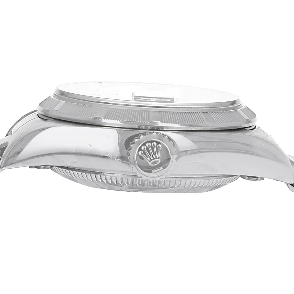 Driven by a Swiss automatic movement, the watch offers precise timekeeping with hours, minutes, seconds, and date functions, all protected beneath a scratch-resistant sapphire crystal. A classic stainless steel Oyster bracelet with folding clasp completes the design, ensuring both comfort and enduring style.