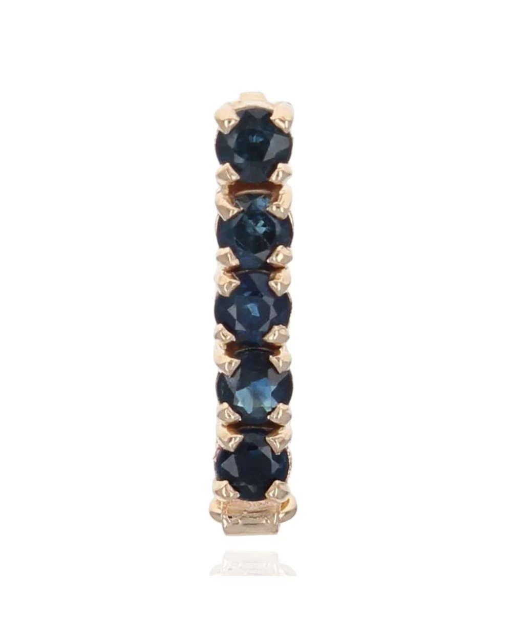 Elegantly crafted from lustrous 14K high polish yellow gold, this Sapphire Pearl Shortener showcases timeless sophistication and exquisite design. The piece features five prong-set, round sapphires totaling 0.65 carats, each meticulously selected for their deep, captivating blue hue. Measuring 16.8mm by 2.9mm and weighing a mere 1.4 grams, this shortener displays a graceful silhouette that enhances any necklace it adorns. The thoughtfully designed snap closure with safety ensures stability and ease of use, combining function with high fashion. A testament to meticulous craftsmanship, this piece is a refined addition that effortlessly elevates your jewelry collection.