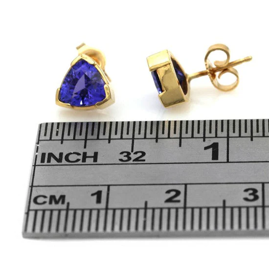 14K Yellow Gold Trillion Cut Tanzanite Stud Earrings